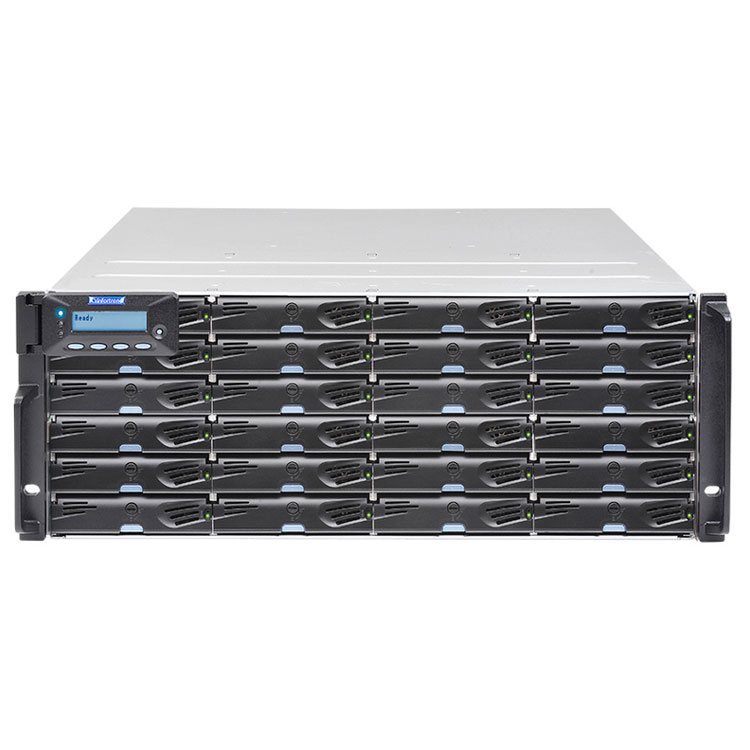 O EonStor DS 3024SUC é um storage SAN da Infortrend, que apresenta 24 baias hot swappable para instalação de discos rígidos ou SSDs SAS/SATA em um formato rack 4U. É equipado com controladora única, 4GB RAM, 2 slots para placa host, 4 portas 1GbE iSCSI e 1 porta SAS para expansão.