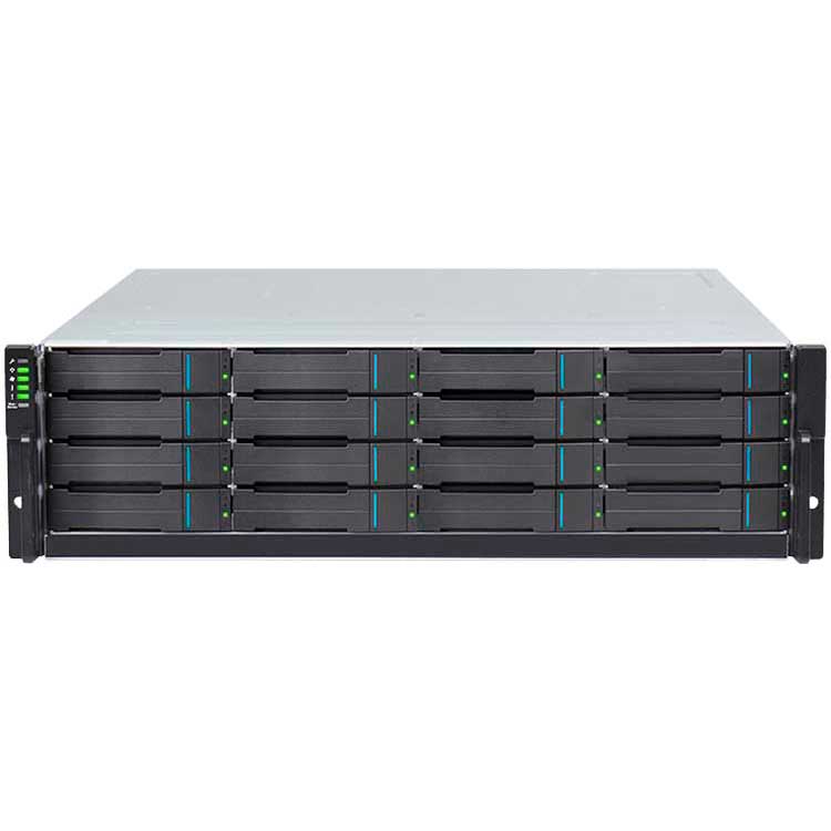 O Infortrend EonStor GS 3016S é um storage equipado com 16 baias hot swappable para instalação de discos rígidos ou SSDs SAS, processador Intel Xeon D 4 Core, 8GB de memória,(expansível até 192GB), fonte de alimentação redundante e controladora única, além de 2 portas LAN 25GbE por controladora.