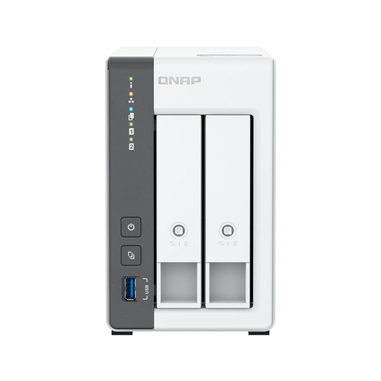 O TS-216G é um storage NAS compacto da Qnap, apresenta 2 baias para instalação de discos SATA, processador ARM Cortex-A55 4-Core, 4GB de memória, 1 porta Ethernet Gigabit RJ45, 1 porta 2,5GbE, 2 portas USB 2.0 e 1 porta USB 3.2.