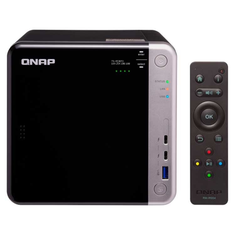 O Qnap TS-453BT3 possui 4 baias para instalação de discos rígidos SATA de 2,5" ou 3,5", possibilitando até 72TB de capacidade bruta, é equipado com processador Intel Celeron Quad-Core, 8GB de memória RAM, duas portas Thunderbolt 3, duas portas LAN Gigabit, uma porta 10GBASE-T e duas portas HDMI.