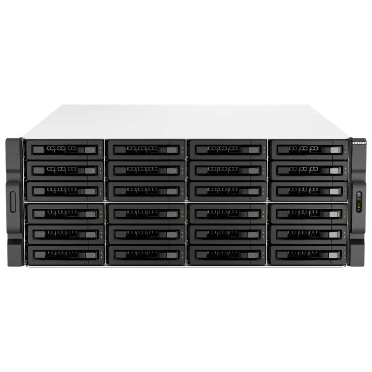 O storage TS-h3087XU-RP possui 30 baias hot swappable, sendo 24 baias de 3,5 polegadas para instalação de HDD/SSD e 6 baias de 2,5 polegadas para instalação de SSDs, ele é equipado com processador Intel Xeon E-2378, 64GB de memória ECC DDR4, 2 portas 2,5GbE, 2 portas 10GbE e 3 slots PCIe.